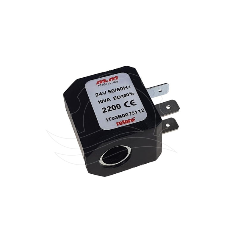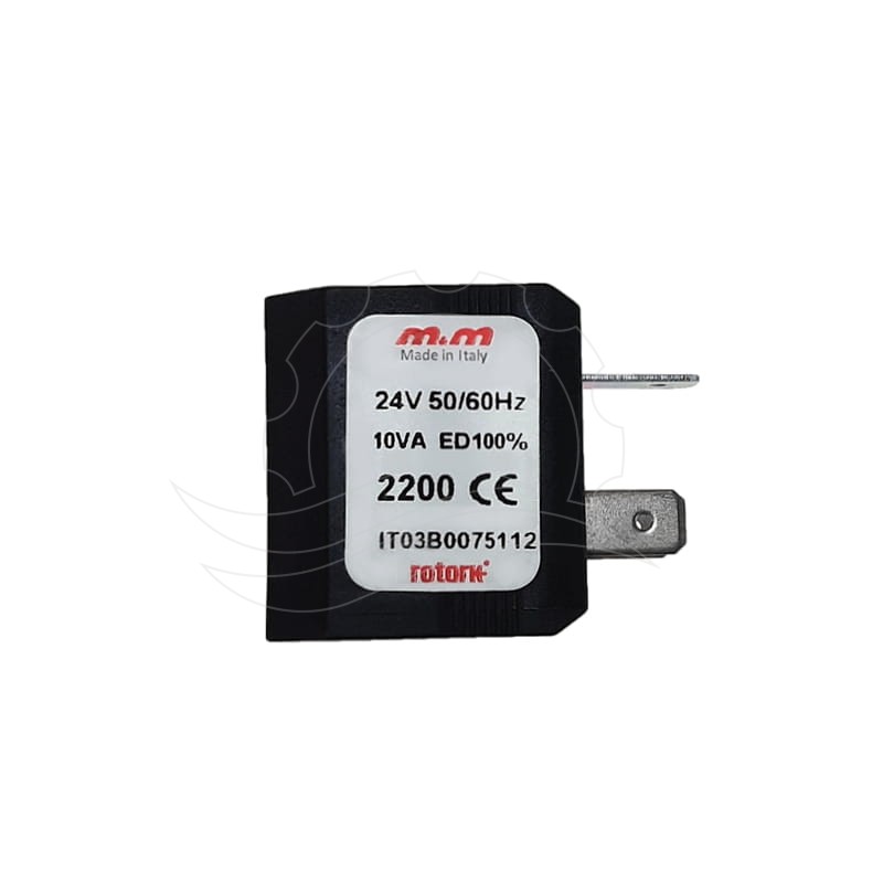 Cívka solenoidového ventilu značky M&M, 10VA, napájena 24V AC. Vhodná pro solenoidové ventily: B203, B204, B205, B206.