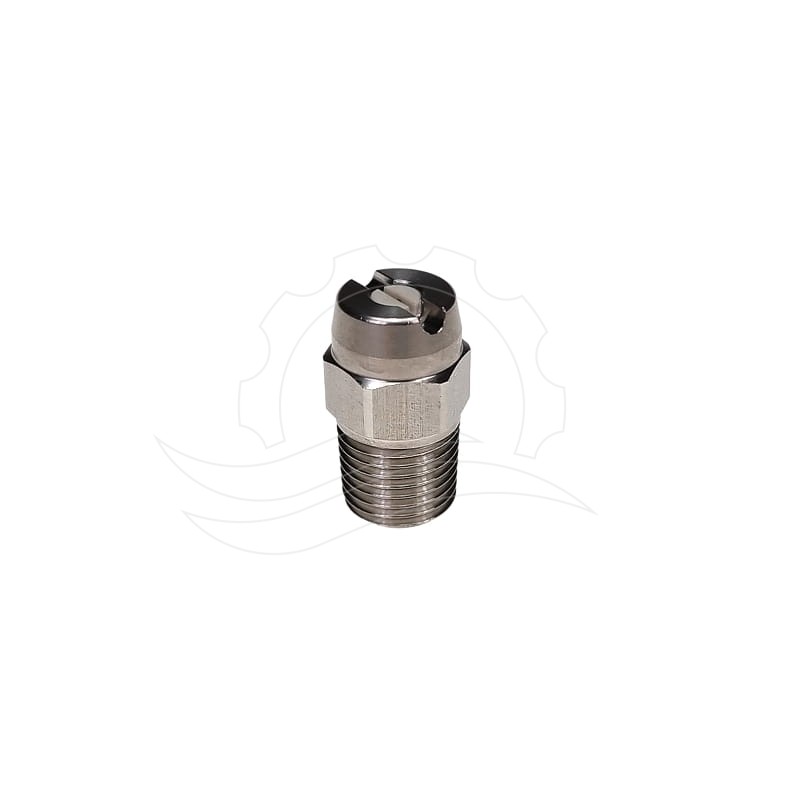 Vysokotlaká keramická tryska s plochým proudem pro trubky. Úhel vodního paprsku 40°. Průtok při 100 barech - 9 l/min. Závit 1/4".