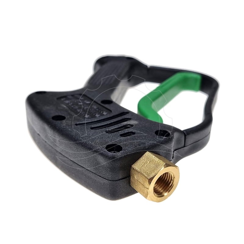 Pistole Aura od italského výrobce MTM Hydro. Pistole je vybavena přepouštěcím ventilem, který se otevírá pouze při nízkém tlaku a zůstává uzavřený při provozu s vysokým tlakem. Pistole má na straně hadice neotočný konektor G3/8"F a na straně trysky otvor G1/4"F. Pistole byla z výroby instalována ve starších modelech automyček Ehrle.