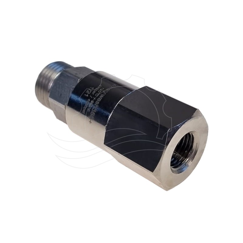 Easywash365+ Přímý otočný konektor G1/4"F-M18x1,5M. Pouzdro z nerezové oceli a poniklované mosazi. Hřídel z nerezové oceli s průměrem průtoku 6 mm. Maximální tlak 275 barů, maximální teplota 120 °C.