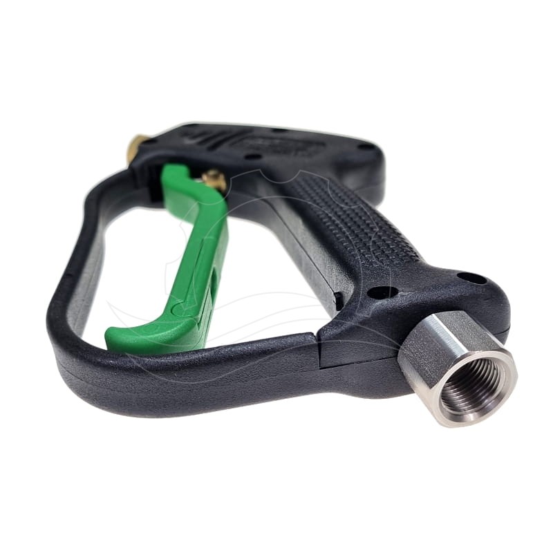 Pistole Aura od italského výrobce MTM Hydro. Pistole je vybavena pojistným ventilem, který se otevírá pouze při nízkém tlaku a zůstává uzavřený při provozu s vysokým tlakem. Pistole má otočný konektor G3/8"F na straně hadice a port G1/4"F na straně trysky. Tento model pistole Aura se často vyskytoval v automyčkách Ehrle. Jeho výroba byla ukončena v roce 2024. Místo něj doporučujeme pistoli Tecomec MV925, která má stejné parametry (LG-005).