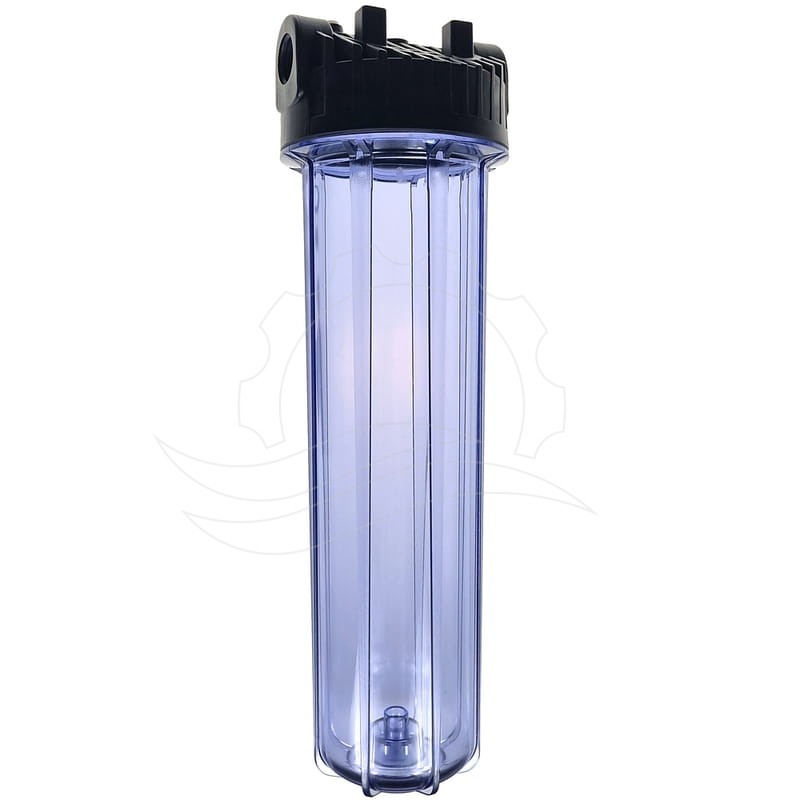 Pouzdro vodního filtru Big Blue 20" má průhledné pouzdro, které umožňuje rychlé vizuální posouzení úrovně znečištění filtrační vložky. Tato pouzdra se instalují v systémech vyžadujících vysokou účinnost. Tento typ filtru se z výroby instaluje v myčkách automobilů BKF jako předfiltr v systému reverzní osmózy (s filtrační vložkou 5 µm) a v myčkách kontejnerů jako hlavní filtr (s filtrační vložkou 50 µm). Má závitové připojení 1".