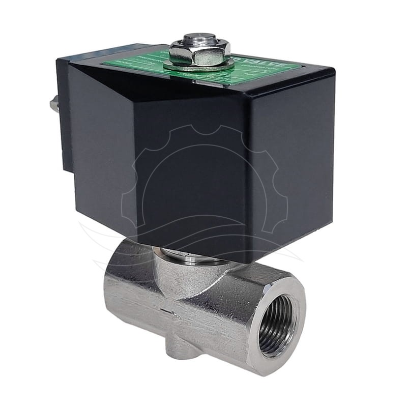 Vysokotlaký solenoidový ventil vyrobený z nerezové oceli. Cívka napájena 24 V AC. Připojení 3/8". Přípustná provozní teplota: 80 °C. Lze použít jako solenoidový ventil pro přepínání průtoku vysokotlaké vody na vybranou trysku. Může úspěšně nahradit ventily 316133 od firmy Jakša (VC-014) nebo D635DTT1 od firmy M&M (VC-026).
