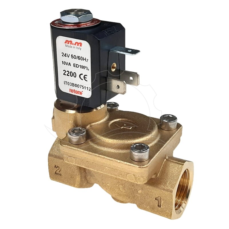 Nepřímý solenoidový ventil M&M. Normálně zavřený. Napájecí napětí: 24 V AC. Instalováno z výroby v automyčkách Wash Italia a dalších. Lze použít k regulaci průtoku čisté vody nebo vody s neagresivní chemikálií. Pro tento model jsou k dispozici opravné sady VK-022 a VK-040.