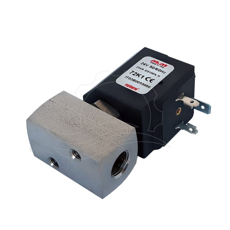 Vysokotlaký solenoidový ventil M&M. Používá se jako přetlakový ventil během provozu systému cirkulace nemrznoucí směsi. Montáž z výroby v myčkách automobilů Ehrle Modulline. Označení: MV4. Pro tento model jsou k dispozici vyměnitelné patrony VK-021.